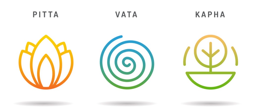 Als zweites Grundprinzip, um die individuelle Beschaffenheit des Körpers festzustellen, dienen die drei Doshas Vata, Pitta und Kapha. Bioenergien, die sich aus den fünf Elementen Raum, Luft, Feuer und Wasser zusammensetzen und je nachdem, wie stark ausgeprägt diese sind, für Gleich- und Ungleichgewicht im Körper sorgen. Dabei erfüllt jedes Dosha eine gewisse Funktion und besitzt Eigenschaften, die es gilt im Lot zu halten. Vata etwa stellt die Energie der Bewegung dar und führt die Nahrung durch den Körper. Nimmt diese Energie eine ausgeglichene Rolle im Organismus ein, so sorgt sie beispielsweise für eine stetige Ausscheidung von Giftstoffen und eine gute Durchblutung. Doch zu viel Vata-Energie zieht wiederrum Blähungen oder Kältegefühl in den Gliedmaßen nach sich. Nach diesem Prinzip verhält es sich auch bei den anderen beiden Doshas. Pitta meint die Energie der Umwandlung und herrscht hiervon Gleichgewicht, so sorgt die Energie aus Feuer und Wasser für einen guten Appetit und hormonelles Gleichgewicht, während zu viel davon Sodbrennen oder Hautprobleme verursachen kann. Kapha generiert Zusammenhalt der Gewebe und Gelenke und starke Knochen, sowie ein gut funktionierendes Immunsystem. Ein Kapha-Überschuss hingegen kann die Ursache von Gewichtszunahme und Wassereinlagerungen darstellen. Ein Gespür für das eigene veranlagte Verhältnis der drei Doshas zu bekommen, spielt schließlich auch dann eine große Rolle, wenn es darum geht, welche Nahrungsmittel konkret aufgenommen werden sollten. Denn die geeignete Ernährung hilft dabei, einen Ausgleich mit unserer eigenen Veranlagung der Bioenergien zu finden.