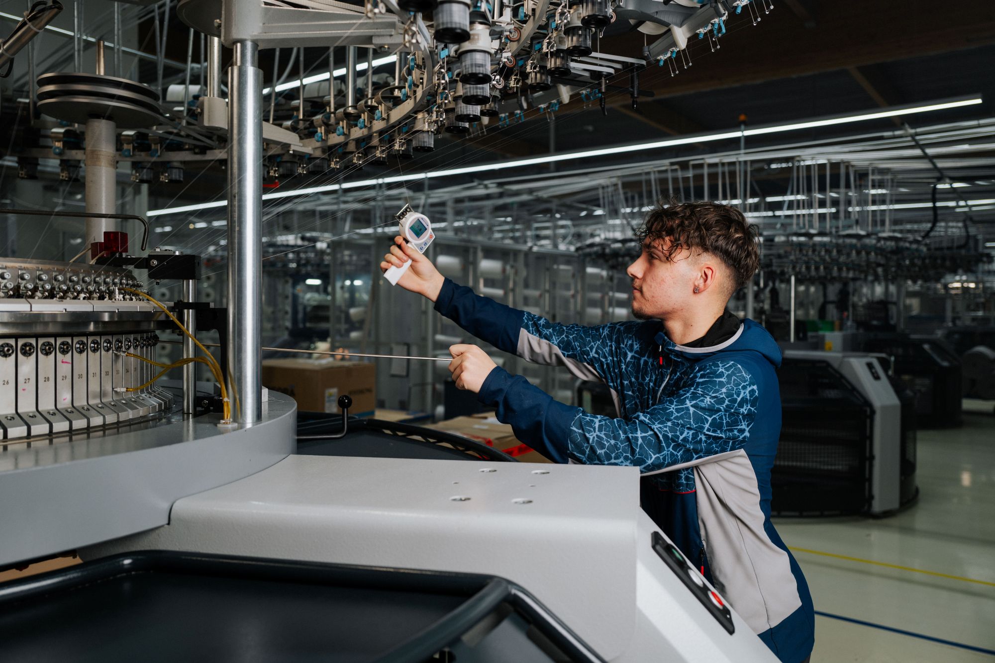 Dass rund 70 % der Stoffe aus der hauseigenen Strickerei in Österreich stammen, ist in der Branche eine Rarität. Es ermöglicht Löffler nicht nur eine beinahe lückenlose Qualitätskontrolle, sondern auch eine gestalterische Freiheit, die sonst kaum möglich ist: Stoffe können mitentwickelt, angepasst, verbessert werden. Dass man nicht bei 100 Prozent liegt, hat nachvollziehbare Gründe. „Wir betreiben eine eigene Strickerei und können damit sämtliche Strickstoffe selbst herstellen – Webstoffe hingegen gehören nicht zu unserem Portfolio“, erklärt Marketingleiter Jörg Tichy. „Deshalb beziehen wir bestimmte Materialien extern, dazu zählen auch spezielle Funktionsfasern wie etwa die Softshell Materialien”. Ingesamt werden 90% der gesamten Wertschöpfung in Europa erbracht.
