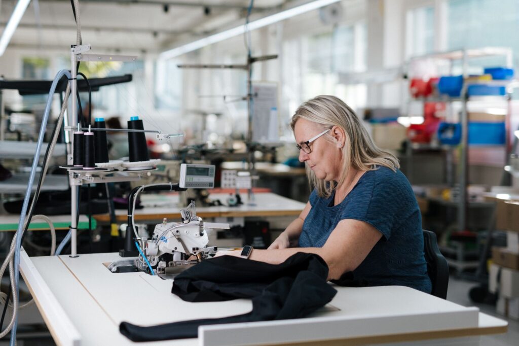 Wer die Fertigung in Ried besucht, merkt schnell: Hier arbeitet kein Modekonzern, sondern ein Technologie-Unternehmen mit Nadel und Garn. Maschinen brummen, Fachkräfte nähen mit höchster Präzision, Stoffballen liegen meterweise bereit – und dennoch ist die Atmosphäre ruhig, konzentriert, handwerklich.