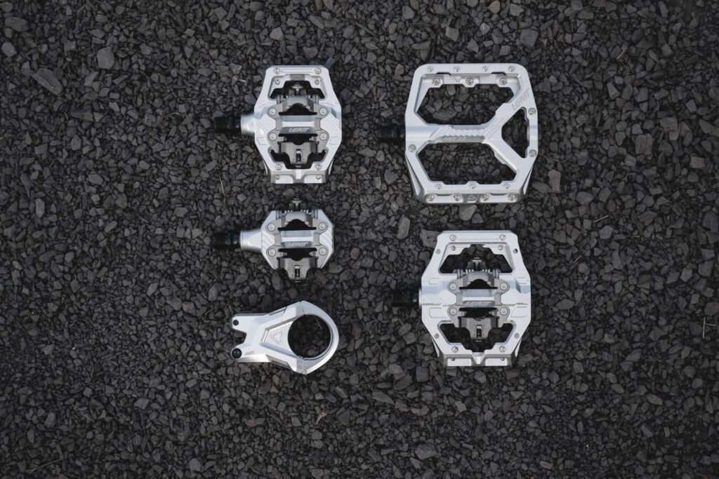 Nach vier Jahren schier endloser Entwicklung bringt die Marke jetzt eine eigene Linie an hochwertigen MTB-Komponenten auf den Markt: Pedale, Vorbauten, Lenker und Griffe – die Top-Linie davon aus CeraMAG gefertigt, einer keramikbeschichteten Magnesium-Legierung. Das Ziel? Maximale Stabilität bei minimalem Gewicht, kombiniert mit cleanem Design und robustem Engineering. Ob Flat- oder Klickpedal, All-Mountain oder Gravity – Leatt liefert eine variable Auswahl inklusive Titan-Optionen und verschiedenen Farbwegen.