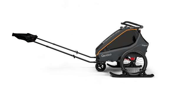 Wer gerne auf Langlaufskiern unterwegs ist, kann auf das separat erhältliche Ski-Set umrüsten. So wird der Kidgoo 2 auch bei Minusgraden zum komfortablen, sicheren und wetterfesten Transportmittel für den Nachwuchs.