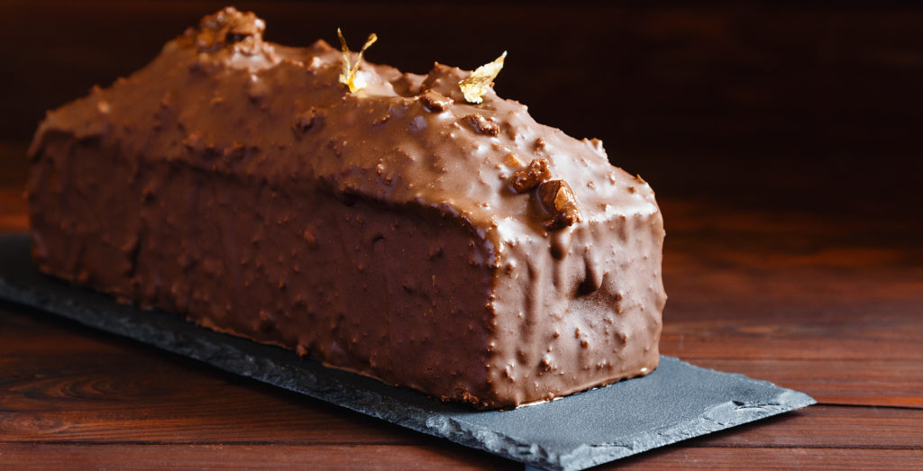 7) Das Banenbrot vollständig abkühlen lassen. Anschließend die Schokolade im Wasserbad schmelzen und über das Bananenbrot gießen. Die Schokolade gut trocknen lassen.