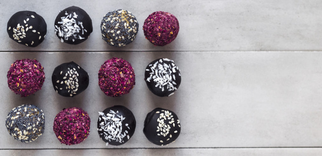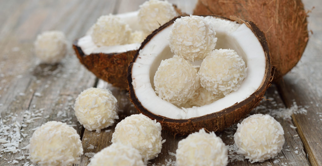 4) Die geformten Bällchen in den Kokosraspeln wälzen und zur Aufbewahrung in den Kühlschrank geben.