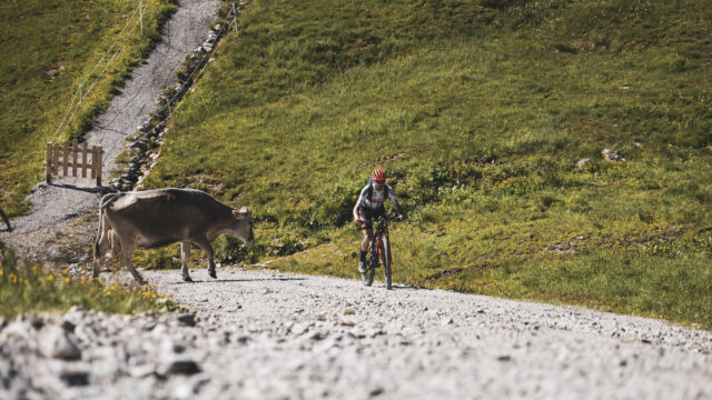 Die heutige siebte Etappe der Trans Austria führte über die Pillerhöhe in Richtung Reschenpass. Doch noch bevor es diesen zu bezwingen galt, verließen die KTM Pro Team Athleten kurz Österreich, in die zollfrei Zone nach Samnaun in der Schweiz. Mit dem Gipfelsieg am Palinkopf (2800m) erreichten die Mountainbiker das Dach der Tour. Ein mörderhaft schwieriger Anstieg, der steiler kaum sein könnte. Nach einer ebenso halsbrecherischen Abfahrt nach Ischgl, führte ein weiterer Anstieg auf die Silvretta. Oben angekommen, galt es noch die Abfahrt in den Etappenzielort, Schruns, zu bewältigen.